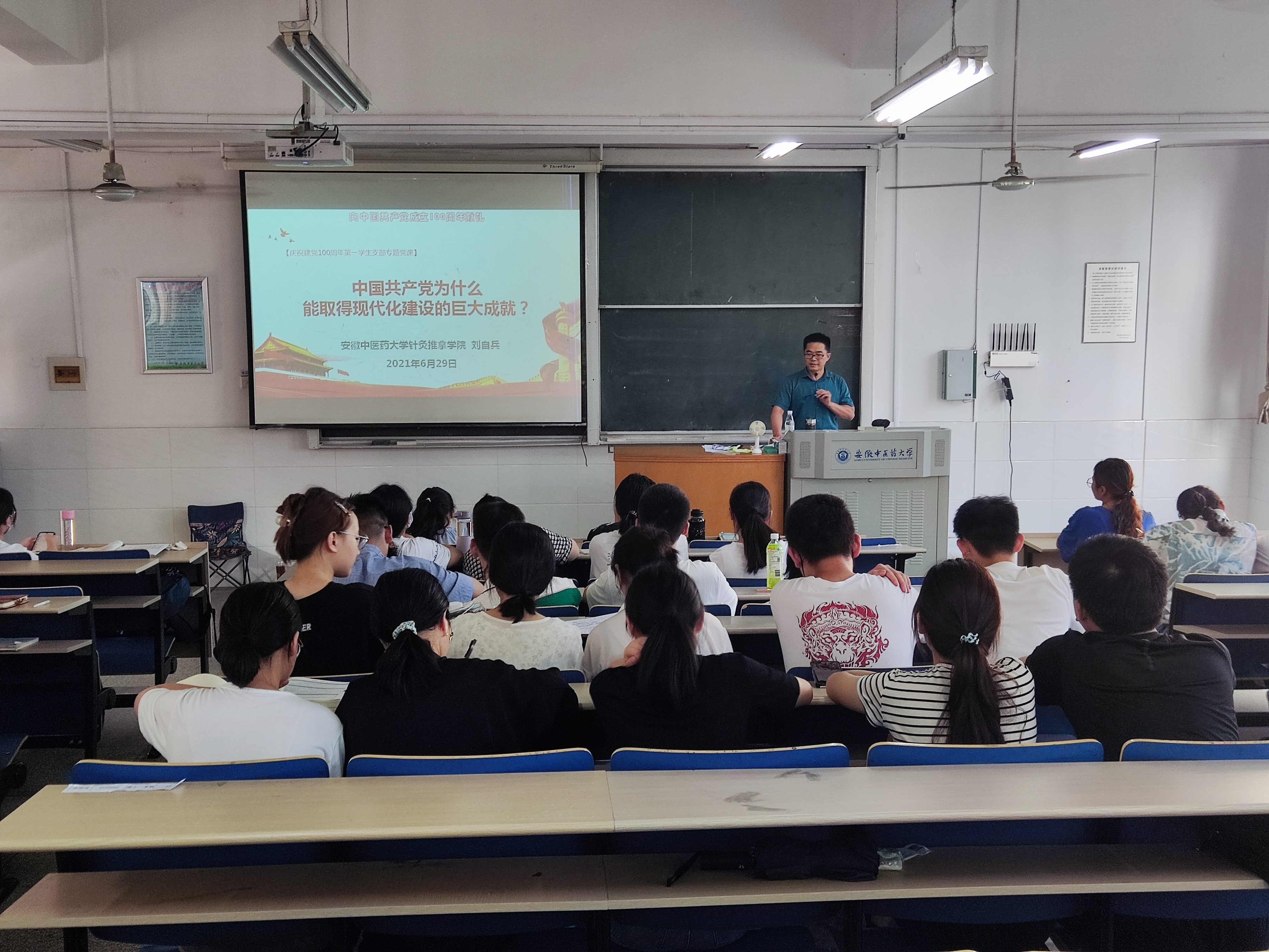 6月29日下午,针灸推拿学院学生第一党支部在梅山路校区仲景楼305教室开展党史学习教育专题党课,由学院副院长刘自兵主讲。
