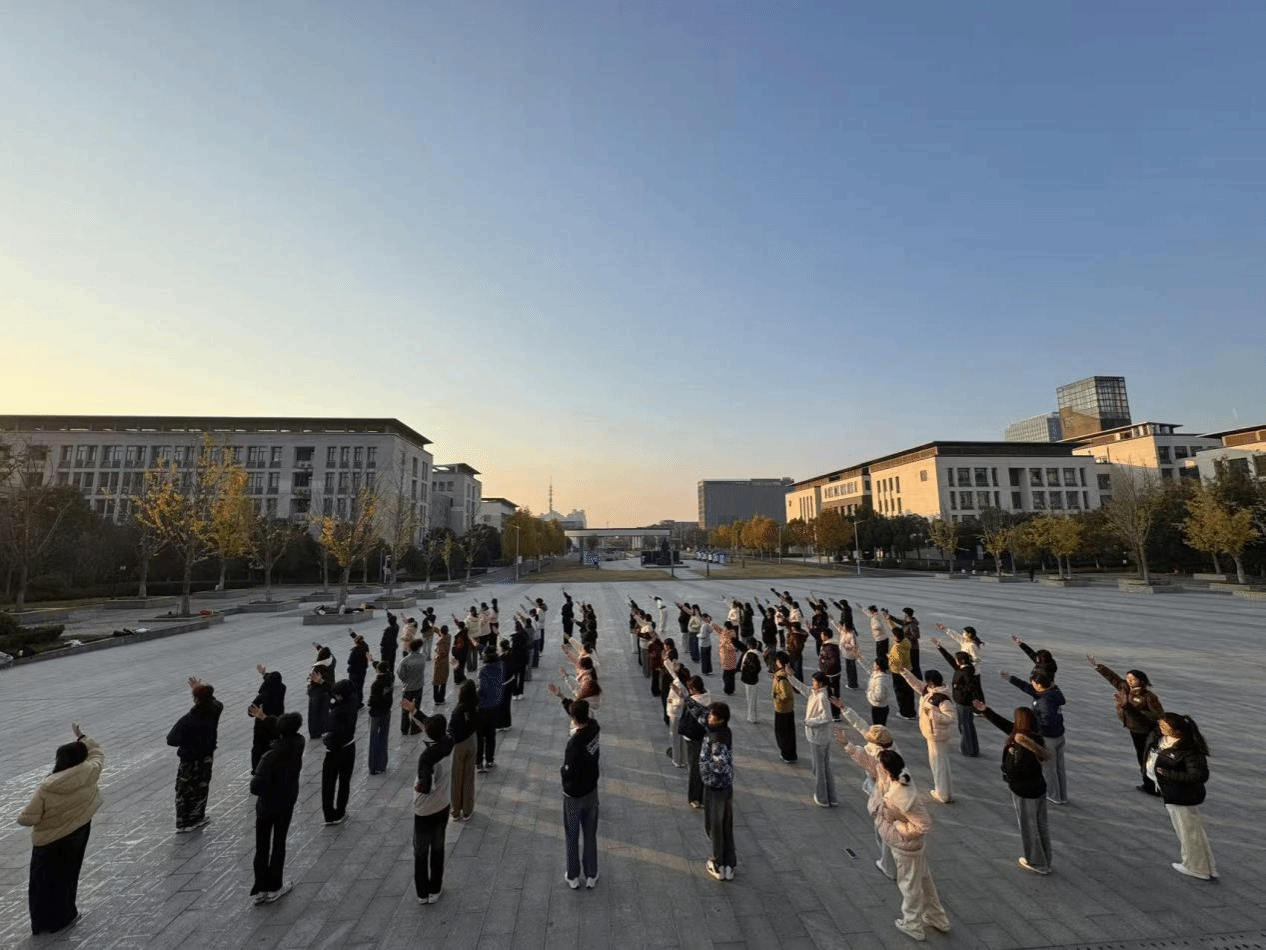 活动在晨曦中拉开帷幕。清晨的华佗广场,师生们齐聚一堂,共同习练“古本易筋经十二势导引法”与“华佗五禽戏”。一招一式,吐故纳新,不仅舒筋健骨、调和气血,更在动静相兼中亲身实践了中医“治未病”的养生精髓。这场晨练,不仅是对经典导引的活化传承,也为全天的学术活动奠定了“重根基、强气血”的鲜明基调。