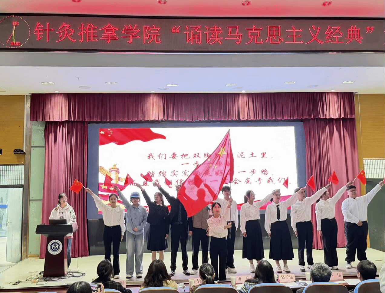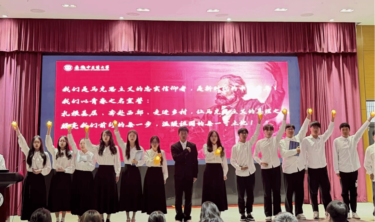 各班团队围绕《共产党宣言》《为人民服务》《青年在选择职业时的考虑》等马克思主义经典篇目展开了激情澎湃的诵读,力求诠释经典著作的深刻内涵,将马克思主义的基本原理和核心观点清晰呈现,更融入了当代青年对时代的深入思考。他们结合当下社会热点、国家发展成就以及职业规划等,抒发了对马克思主义的崇敬与信仰,展现出一定的理论素养和积极向上的精神风貌。