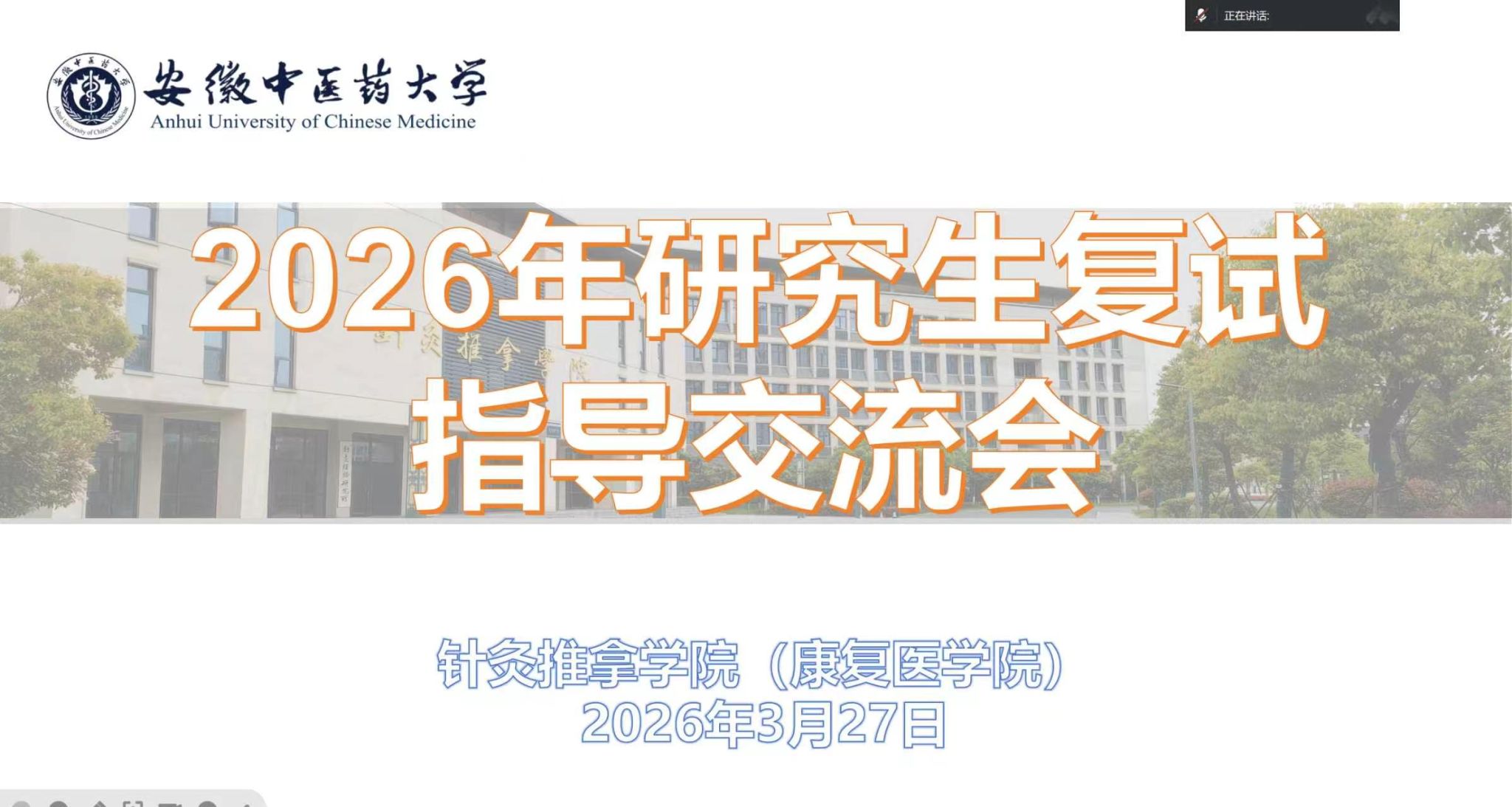 为深入贯彻学校研究生招生工作部署,精准助力 2026 届考研学子高效备考、从容应对复试,切实提升复试备考效率与成功率,3月27日,针灸推拿学院聚焦中医外科学、中医骨伤科学、针灸推拿学、中西医结合、中医内科学五大核心专业,系统开展 2026 年研究生复试专项指导系列活动,以全维度、精准化帮扶为学子研途保驾护航。