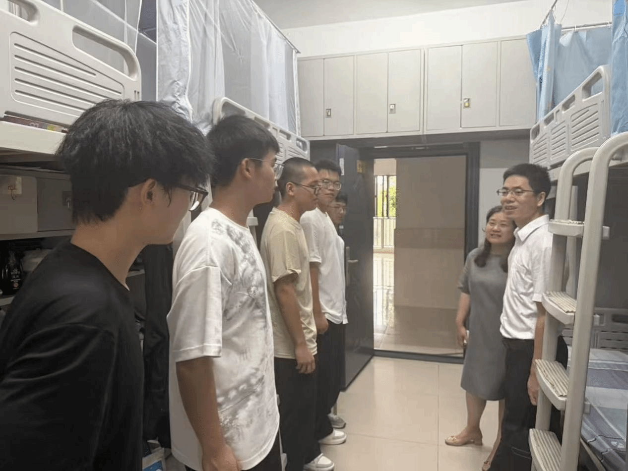 走访过程中,学院领导逐一走进新生宿舍,与家长、同学们亲切交谈。学院党委书记唐巍、院长蔡荣林细致询问新生籍贯、饮食习惯及住宿条件,并结合专业特色,鼓励新生尽早树立学业目标;党委副书记李海燕则重点强调寝室学习氛围的重要性以及安全问题:提醒学生注意反诈防骗,严禁使用违规电器。