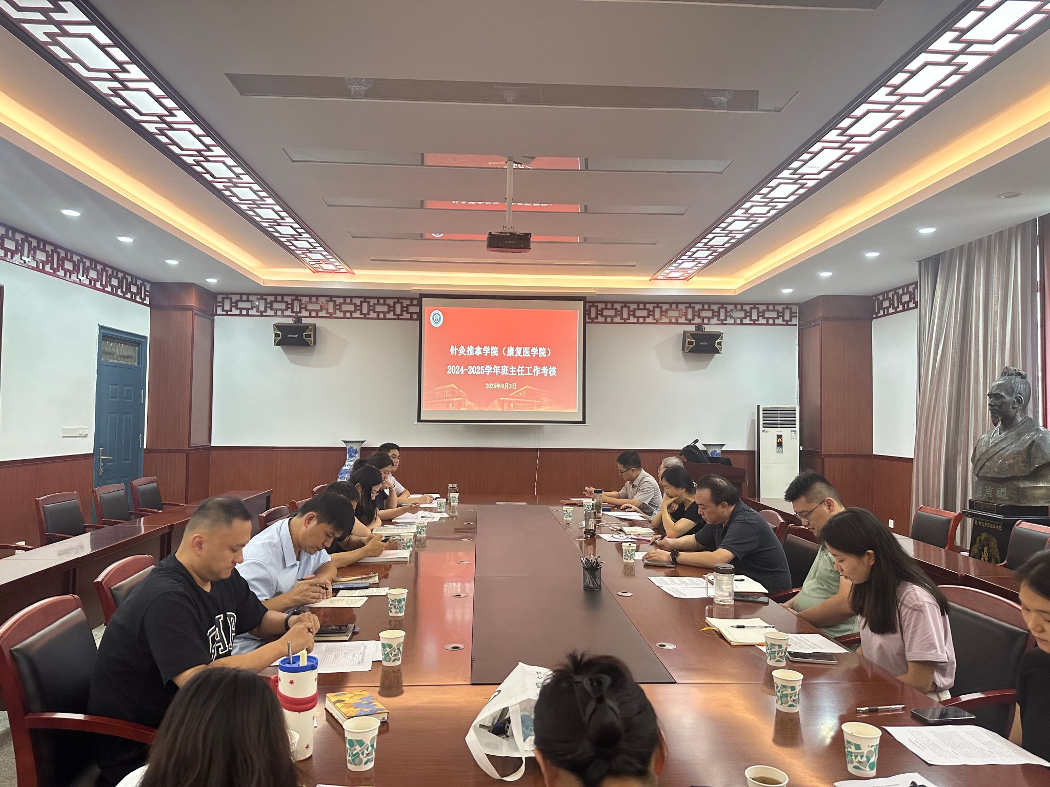 为进一步加强班主任队伍建设,提升育人实效,9月3日下午,针灸推拿学院于至精楼A325会议室召开2024-2025学年班主任工作考核会议。学院党政领导班子成员、各系中心主任、各班主任参加会议。会议由学院副书记李海燕主持。