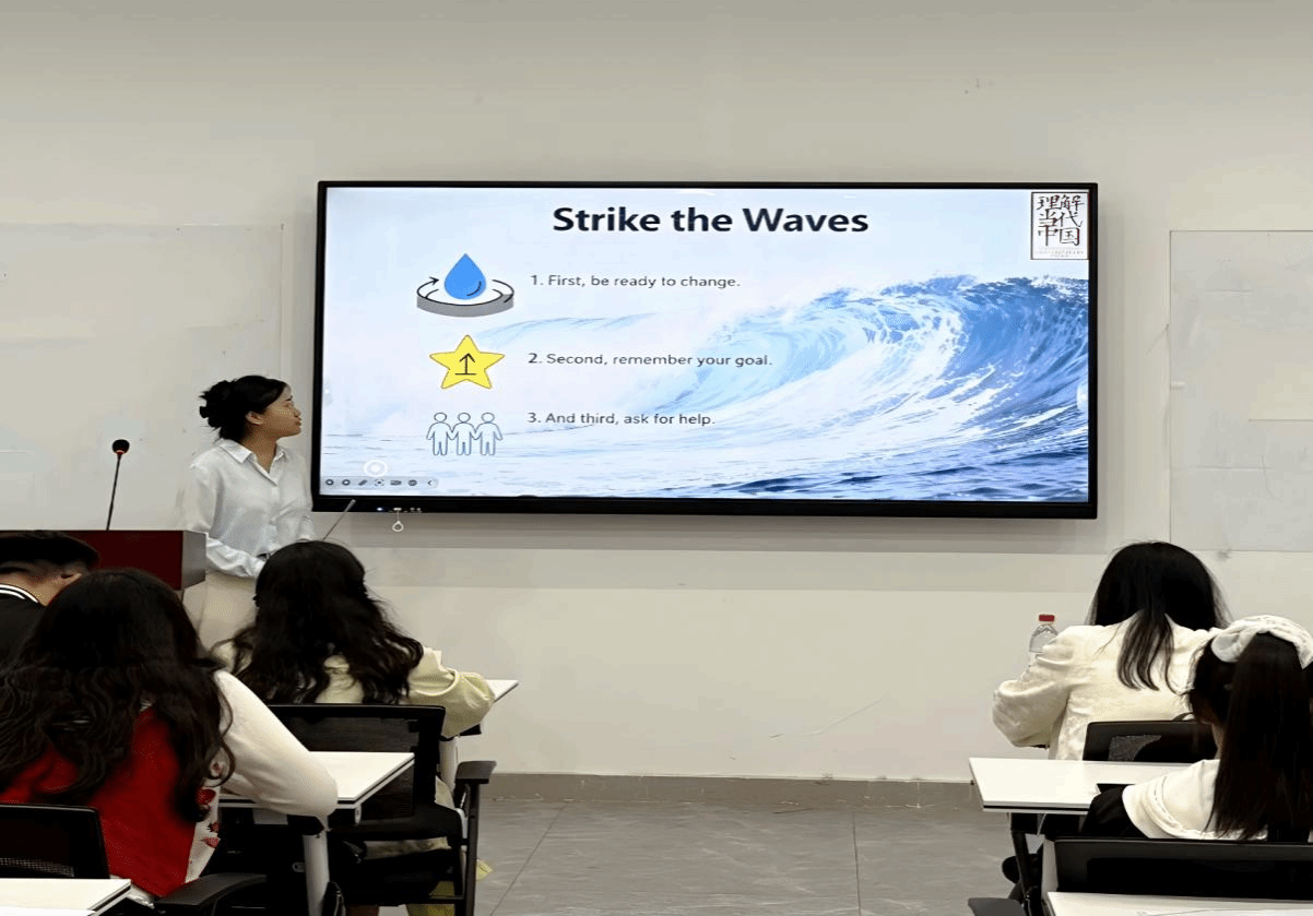 比赛以"Strike the Waves"(破浪前行)为主题,分为定题演讲与即兴问答两个环节,吸引了众多学生同台竞技。选手们结合专业特色与个人感悟,用流畅的外语讲述中国故事、传递青年声音。经过激烈角逐,2025级学生曾嘉仪和2022级学生李宇璇两位同学脱颖而出,荣获比赛一等奖,并将代表学院参加校级决赛。