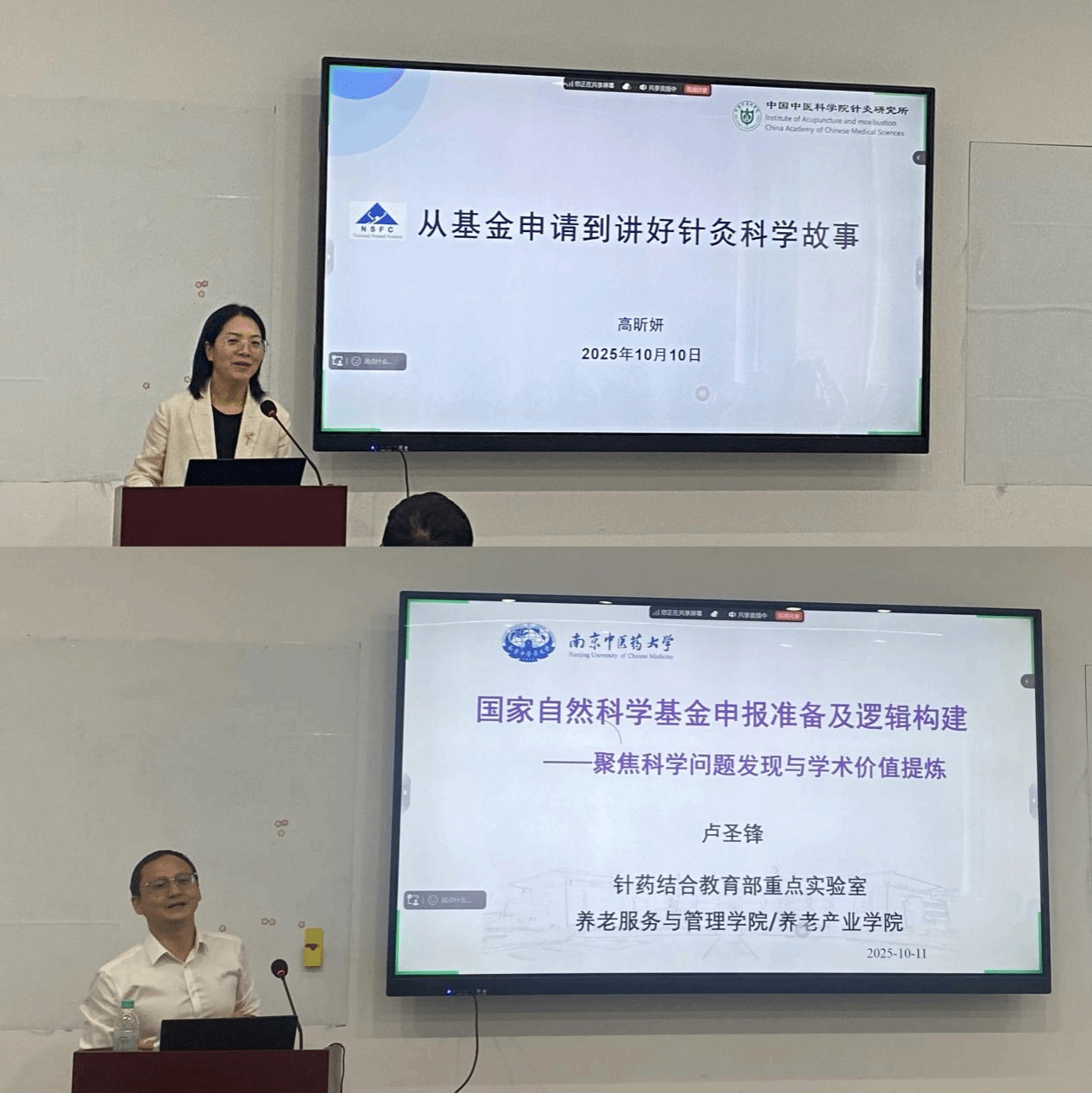 10月11日,中国中医科学院高昕妍研究员、南京中医药大学卢圣锋教授受邀做客华佗大讲堂,围绕国家自然科学基金申报作专题辅导讲座。针灸推拿学院院长蔡荣林出席并主持本次活动,学院教师及研究生以线上线下相结合的方式参会学习。