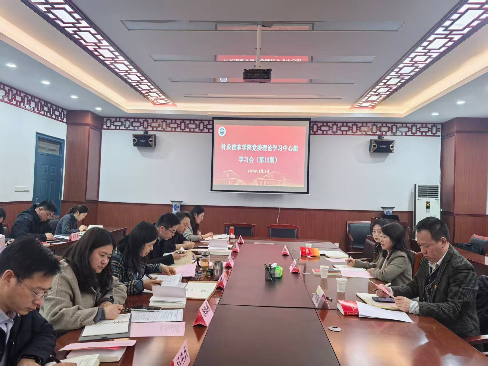 11月17日下午,针灸推拿学院在B9-A325会议室召开2025年第12次党委理论学习中心组(扩大)学习会,专题学习贯彻党的二十届四中全会精神。校党委常委、副校长桂双英,教务处副处长李国强等到会指导。学院党委书记唐巍主持会议,学院党委理论学习中心组成员、各党支部书记参加学习。