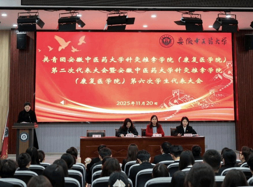 为高举习近平新时代中国特色社会主义思想伟大旗帜,深入贯彻党的二十大和二十届二中、三中、四中全会精神,锚定立德树人根本任务,传承岐黄薪火,勇担时代使命,团结带领全院团员青年守正创新、笃行致远,针灸推拿学院于11月20日召开共青团第⼆次代表⼤会暨第六次学⽣代表⼤会。本次大会由学院分团委负责人张星主持,针灸推拿学院党委书记唐巍、党委副书记李海燕及校团委副书记王小芬出席会议。