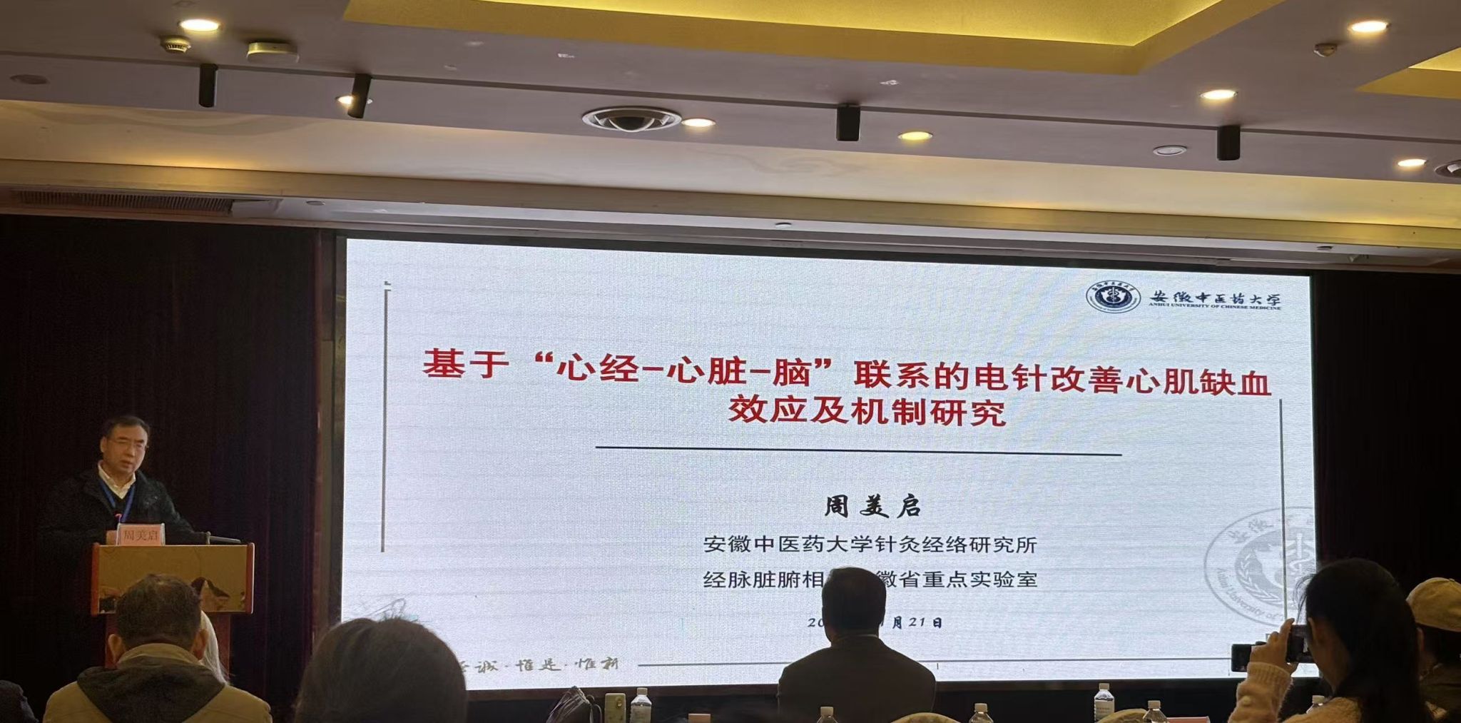 周美启在会上作题为《基于“心经-心脏-脑”联系的电针改善心肌缺血效应及机制研究》的学术报告,分享了团队在针灸作用机理研究方面的最新成果,为电针疗法的临床应用提供了重要的理论支撑和实验依据,引发了与会专家的热烈讨论与高度关注。