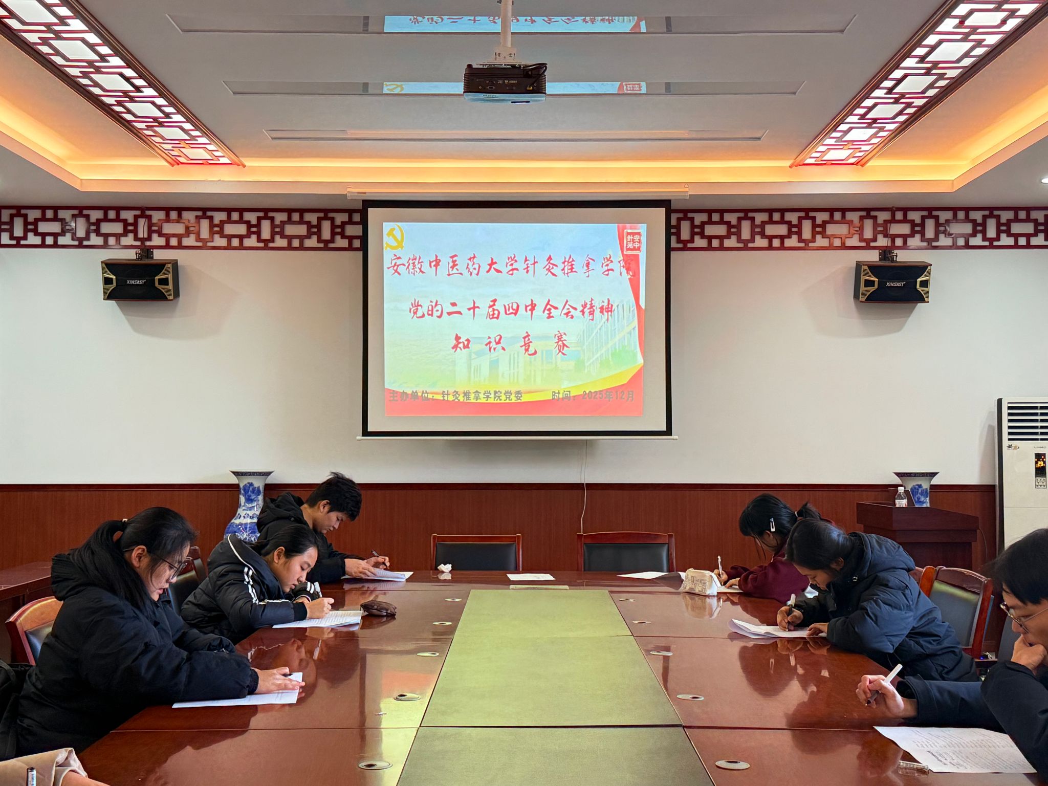 为深入学习宣传贯彻党的二十届四中全会精神,切实推动党的创新理论入脑入心,引导广大青年学生坚定理想信念、厚植爱国情怀,12月14日,针灸推拿学院举办党的二十届四中全会精神知识竞赛,以“以赛促学、以学促用”为生动形式,让全会精神在师生中落地生根。