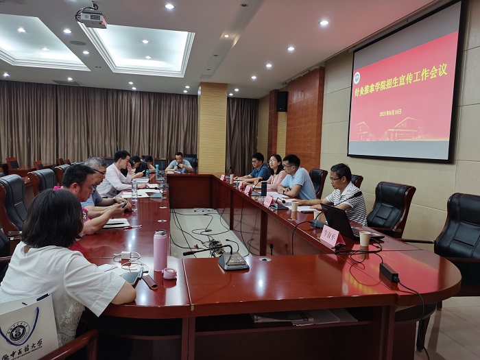 6月16日下午,针灸推拿学院在梅山路校区新安楼一楼会议室召开2021年招生宣传工作会,学院党政领导班子成员、党委委员、各系(中心)主任及部分教师参加会议,会议由学院党委书记蒋宏杰主持。