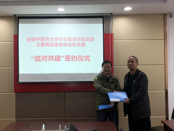 针灸推拿学院党委与杏林社区党委举行了“结对共建”签约仪式,双方希望通过结对共建,共同推进双方党组织的标准化建设和党组织“两个作用”的充分发挥。