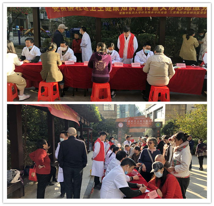 一直以来,针灸推拿学院党委充分发挥学院专业特色和优势,每周一次,为杏林社区开展中医药知识普及、中医药文化宣传、专家义诊、中医五禽戏和易筋经等养生功法的传授等活动,以推动社区全民健康,打造健康社区,积极发挥学院在职党员的先锋模范作用。(李海燕/图文 尹必武/审核)