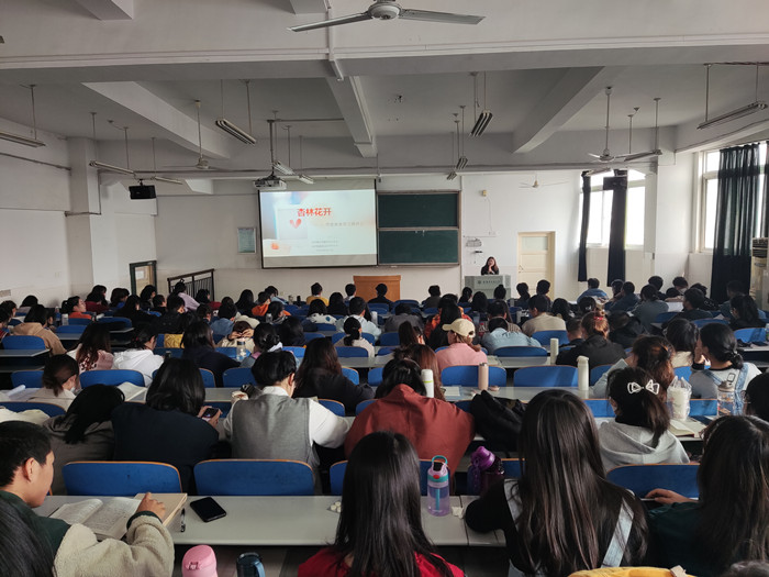 李海燕以“杏林花开”为主题,从心理健康标准、心理健康问题成因分析、大学生主要心理健康问题三个角度逐步进行讲解,充分分析并结合实际案例讲解了加强自我了解、增强自信、与人相处的语言艺术等的重要性。从个人、家庭、学校、社会环境等方面刨析了心理问题的成因与解决办法,并对可能存在的大学生心理问题一一列举和找到应对策略,使同学们进一步认识、了解、学习和掌握心理健康知识的重要性。