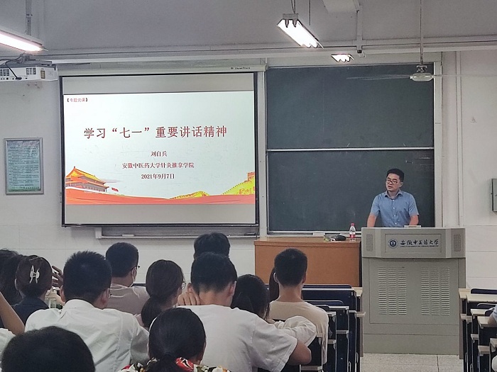 根据学校学院工作要求,结合支部工作实际,9月7日晚6:00,针灸推拿学院学生第一党支部党史学习教育专题组织生活会在梅山路校区仲景楼305召开。会议由支部书记项银霞主持,学院党史学习教育第三巡回指导组组长、学院副院长刘自兵、组员徐亚静出席会议,支部党员参加会议。