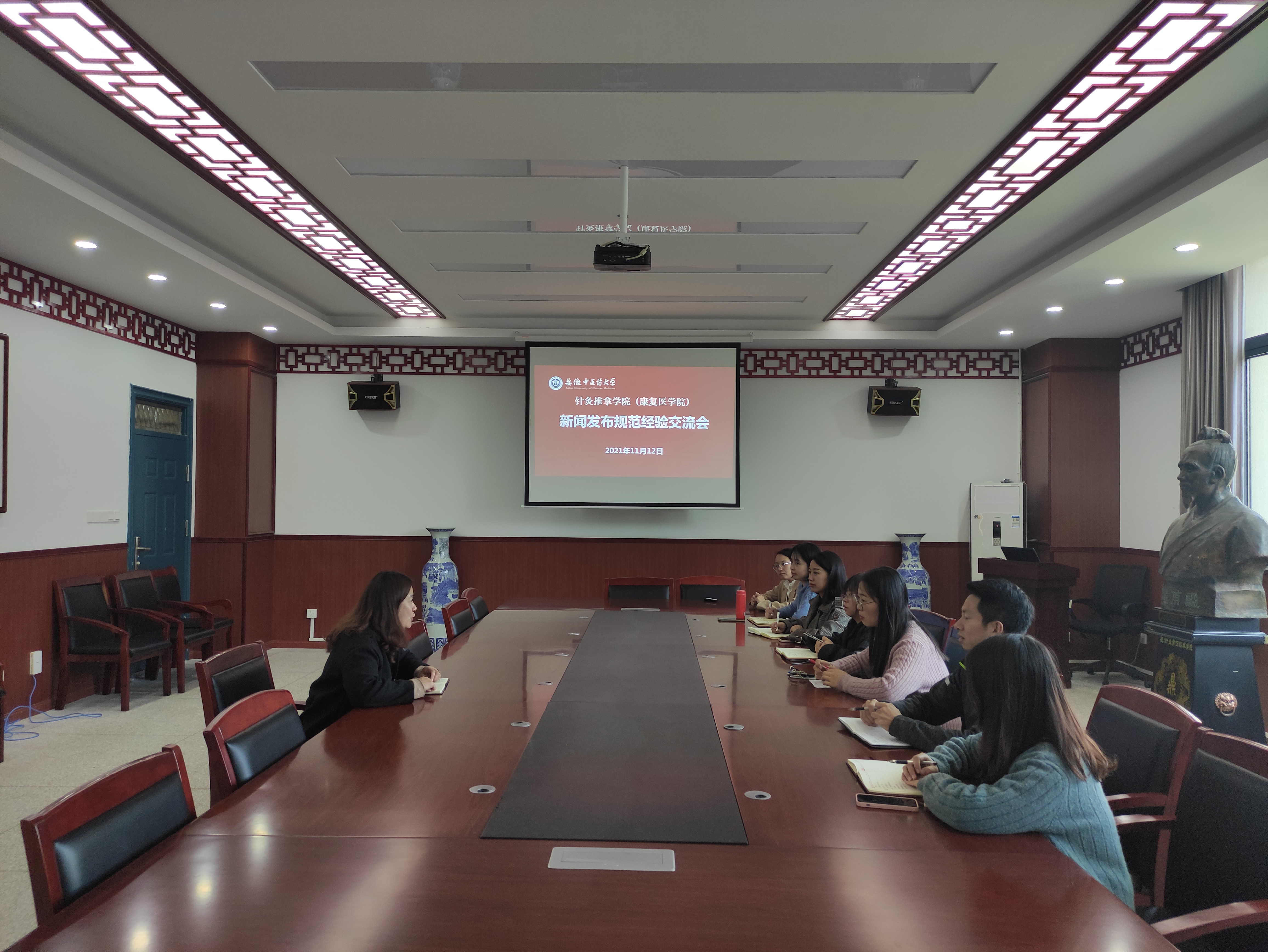 为进一步提高针灸推拿学院新闻宣传报道质量,11月12日,学院举办新闻写作培训会,学院党委副书记李海燕老师担任主讲人,其他相关负责老师参加会议。