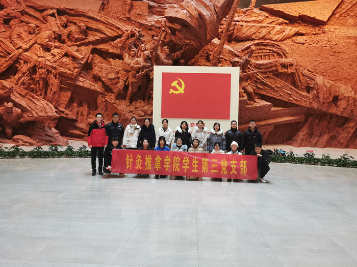 为重温党的光荣历史,汲取党史奋斗经验、智慧和力量,进一步提高党性修养,牢记入党初心,践行党员使命,1月14日下午,针灸推拿学院学生第三党支部组织开展红色教育主题党日活动,带领支部党员、研究生入党积极分子参观渡江战役纪念馆。
