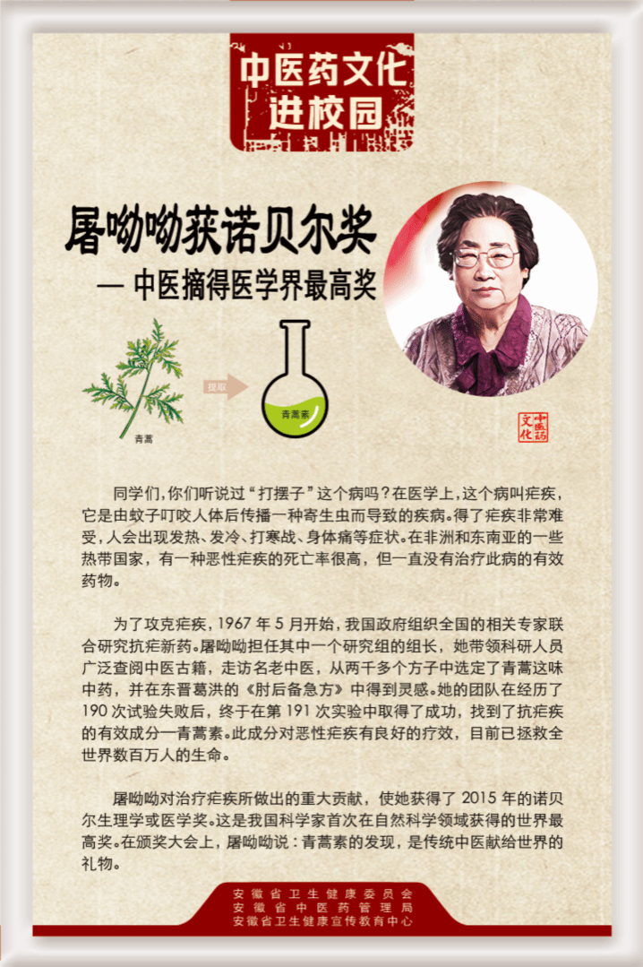 近日,针灸推拿学院组织专家编写了《中医药文化进校园》系列展板、4个中医药文化科普动漫以及编写并演示的《五禽戏》《中药标本制作》两个视频,由安徽省卫生健康宣传教育中心制作完成,并由安徽省中医药管理局发布到全省中小学,作为中医药文化进校园的宣教资料。
