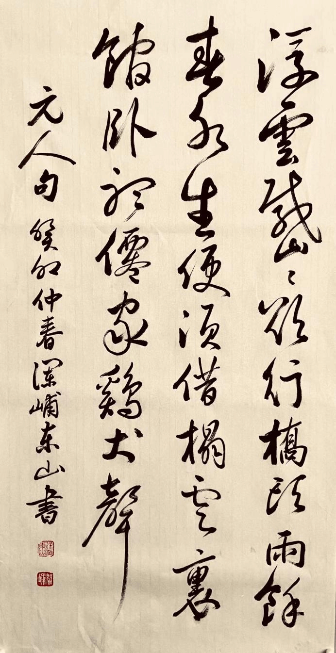 徐东山简介:徐东山,号澜峬、清熙轩主人、黄荆山人。国家一级美术师;中央国家机关美术家协会会员;中央国家机关书法家协会会员;现任公仆书画院副院长、院务委员会委员;东山画院院长。擅长山水、人物、书法、篆刻。其书法作品行笔流畅,挥洒自如,收放有度,一气呵成,自始至终流露着从容不迫和潇洒俊逸的气度,从形质到神韵,均给人以高雅、清新、华美的艺术感受。作品曾多次参加省、国家、国际级书画展和书画大赛并获奖,被多家书画文物单位和个人收藏。(吴子建 图/文,唐巍 审核)