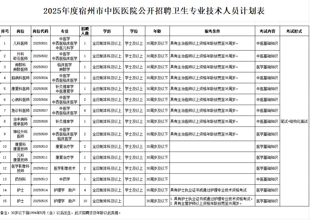 在宿州市人力资源和社会保障局网站、宿州市中医医院网站等媒体(网络)发布招聘公告,公布招聘职位、报名条件及招聘方式方法等。