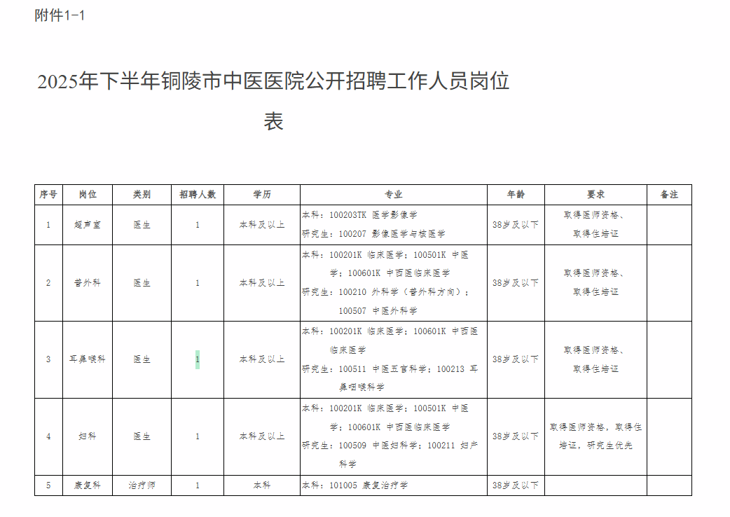 2025年下半年铜陵市中医医院公开招聘工作人员5名,具体岗位及条件见《2025年下半年铜陵市中医医院公开招聘工作人员岗位表》。