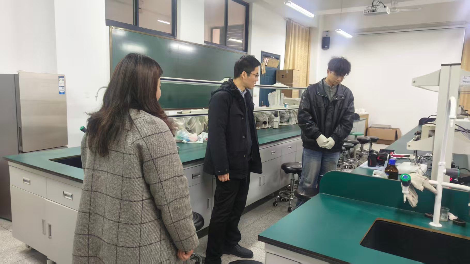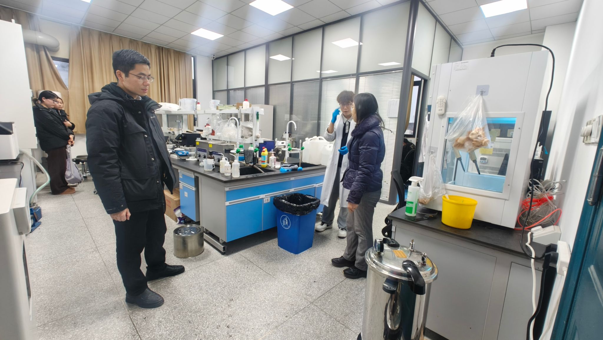 检查组对照前期检查形成的问题清单,逐项进行整改复核。重点聚焦环境卫生、消防安全、用电线路规范、危化品管理等方面的整改情况,并就进一步加强日常管理、完善长效机制提出要求,对在场进行实验的学生进行安全警示教育,着重强调了规范操作的重要性。唐巍强调,实验室安全是学院教学科研工作的重中之重,安全是底线,更是红线,容不得半点马虎。兰崴表示,将对本次“回头看”中发现的新问题建立台账,限期整改,并持续加强日常巡查与维护,切实把安全责任落到实处。